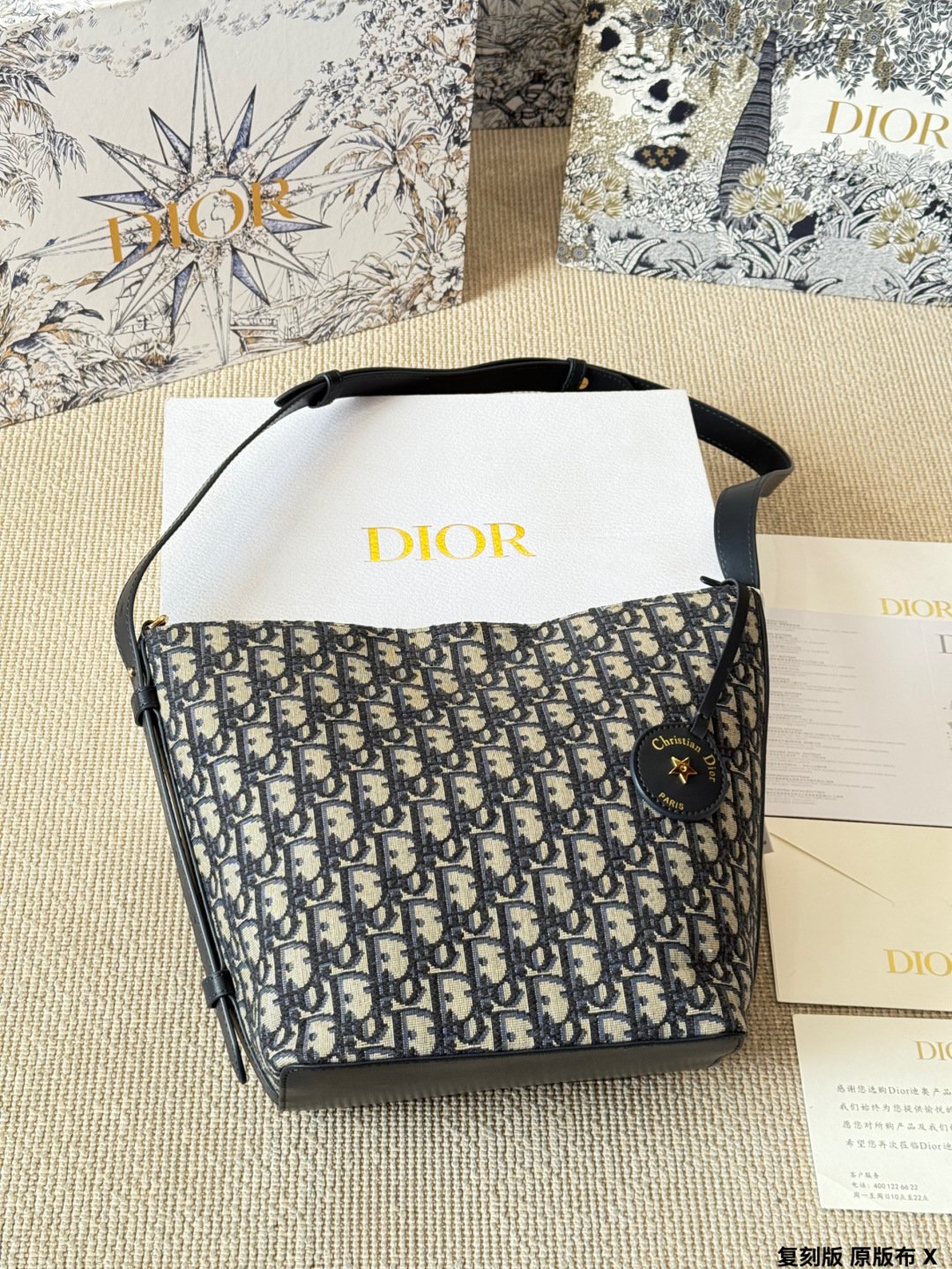 This iconic bag not only delivers style but also maximizes functionality. The spacious interior is thoughtfully designed to accommodate your essentials without sacrificing aesthetics. Featuring a drawstring closure that maintains security while providing easy access, the Dior Star Bucket Bag ensures you can organize your belongings with ease. A smaller zippered compartment inside adds extra storage for important items like cards, keys, or your phone.