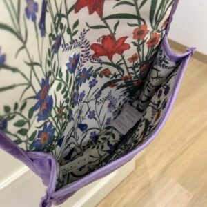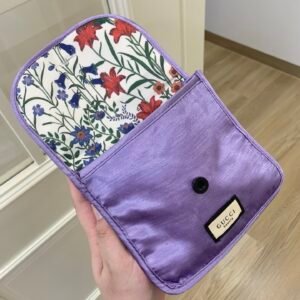 Whether you’re touching up on-the-go or organizing your everyday beauty products, the Gucci Purple Cosmetic Bag is both functional and luxurious. Its compact yet spacious design makes it ideal for slipping into your handbag or luggage while traveling. No matter the occasion, this cosmetic bag adds a stylish flair to your daily routine and showcases your impeccable taste.