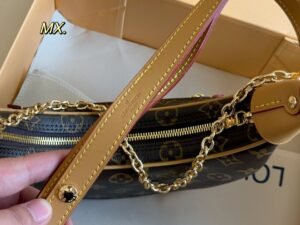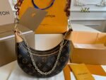 Every stitch of the Louis Vuitton Loop Bag tells a story of unparalleled craftsmanship and attention to detail. Its crescent-shaped silhouette delivers both an ergonomic feel and visual appeal, setting it apart from traditional handbags. The compact design is surprisingly spacious, with a thoughtfully laid-out interior featuring multiple compartments to keep essentials organized. Wear it crossbody with the adjustable strap for hands-free convenience, or opt for the removable gold-tone chain for an elevated evening look.