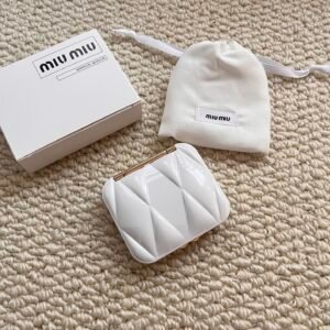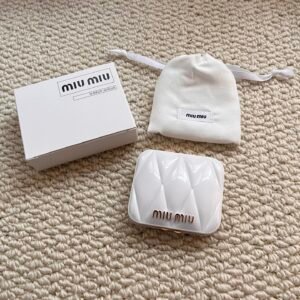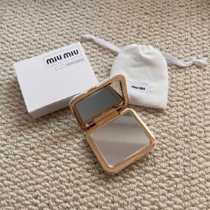 The Miu Miu Mirror is crafted with precision to combine functionality and aesthetic appeal. Featuring a sleek and minimalist design, it’s perfectly suited for both personal use and gifting to someone with refined taste. The frame showcases meticulous detail inspired by Miu Miu’s fashion heritage, ensuring the mirror seamlessly complements any setting—be it your vanity, handbag, or workspace.