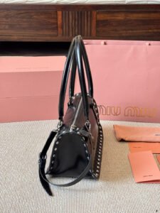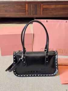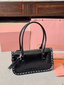 What sets the Miu Miu studded bag apart is its ability to complement a wide range of outfits and occasions effortlessly. Pair it with a sleek evening gown for a red-carpet-ready look, or use it to elevate a casual ensemble of jeans and a blouse. The bold studded detailing lends a modern, edgy vibe, while the bag’s understated elegance ensures it remains a refined accessory.